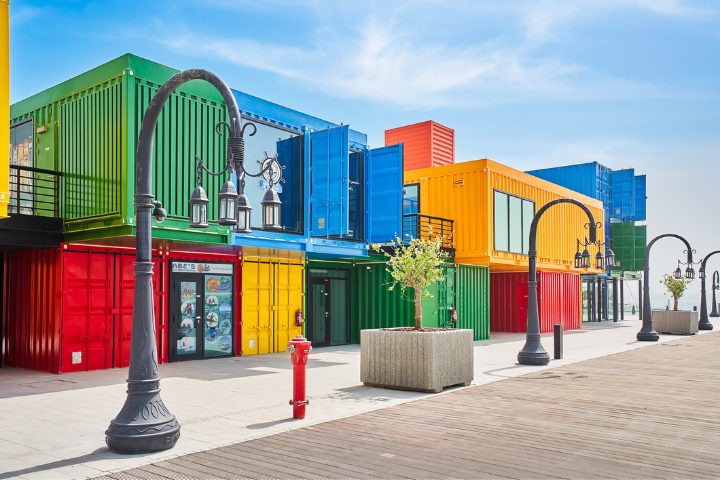 Box Park : containers maritimes aménagés en boutiques et restaurants