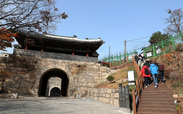 Les montagnes encerclent la ville et l’une des plus intéressantes à explorer est sans nul doute celle de Bugaksan où s’élève la forteresse du même nom, au nord de la ville. Descendez à Hyehwa Station et prenez un taxi pour Waryong Park d’où vous pourrez apercevoir les remparts de la forteresse. Marchez en direction du Malbawi Information center où vous devrez remplir une fiche d’informations avant de pouvoir entamer la visite. Poursuivez l’ascension jusqu’au sommet pour apprécier une vue imprenable sur la ville.